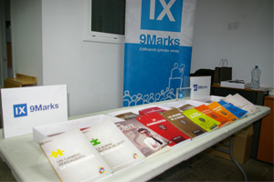 ¿Y qué tiene que ver todo esto con Editorial Peregrino? Primero, Peregrino hizo servicio de librería en la conferencia. Fue un placer reencontrarnos con viejos amigos y conocer a muchos nuevos. En segundo lugar, Peregrino comparte plenamente el llamado a las iglesias para volver a demostrar esta marcas bíblicas en su vida eclesial. En tercer lugar, tal como se anunció en la conferencia, a partir de la ahora, la literatura de 9Marks que existe en castellano será distribuida en España por Editorial Peregrino. De esta forma Peregrino pretende contribuir a que «IX» se vea escrito en cada vez más iglesias a lo largo y ancho de España.